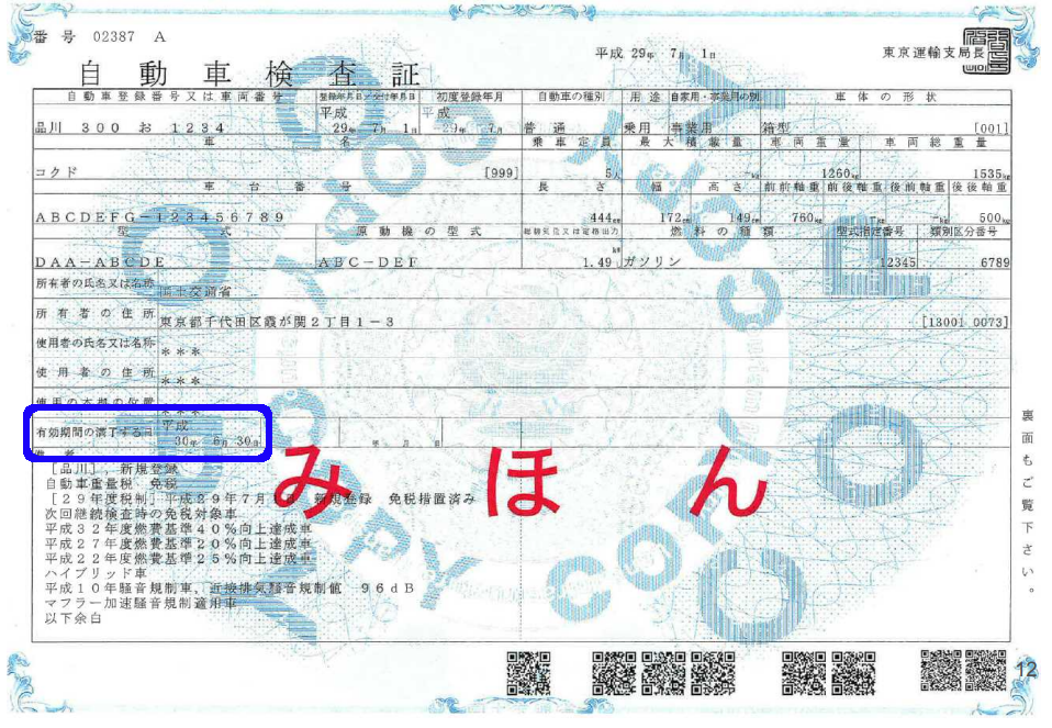 車検の有効期間満了日は、自動車検査証の「有効期間の満了する日」で確認出来ます。