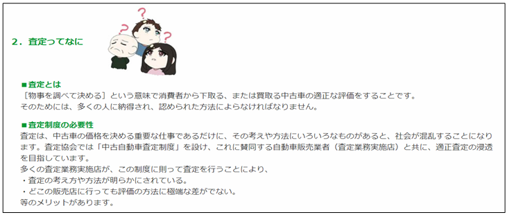日本自動車査定協会(JAAI)による中古自動車査定制度の「具体的な査定方法」を見てみましょう。なお、日本自動車査定協会は、経済産業省・国土交通省の認可のもと設立された、中古車評価の為の公正中立な第三者機関になります。