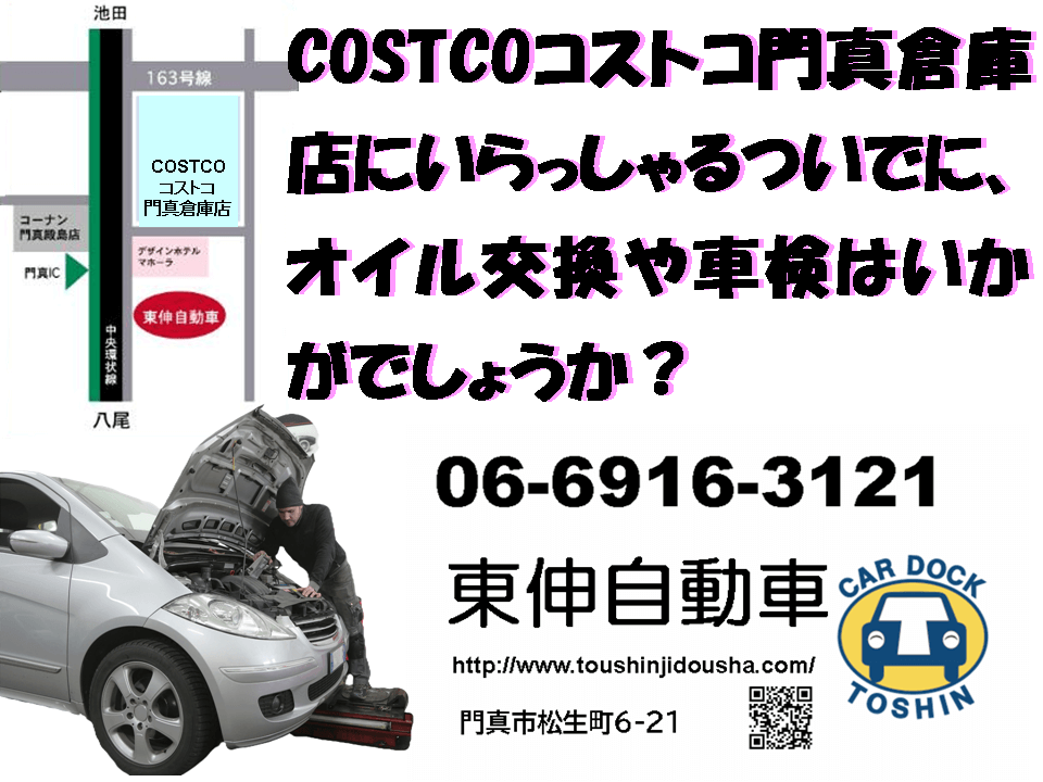 コストコCOSTCO門真倉庫店で駐車場に困ったら!お買い物の間に近所の車屋でオイル交換・車検・点検をしませんか?駐車場代が無料になります!駐車場の待ち時間がゼロ!