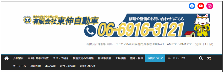 | 〒571-0044 大阪府門真市松生町6-21 有限会社東伸自動車 (担当:熊野・吉村まで) 📞06-6916-3121 |