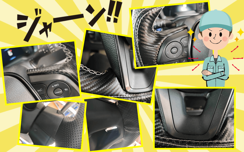 | 修理 | ステアリング(ハンドル)の状態に合わせて修理方法(貼替・リペア等)を検討出来る。 | 修理方法によっては、費用を抑える事が出来る。 |