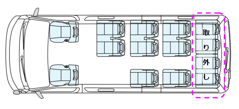 ◎普通免許で運転出来る(14人乗合の場合は中型免許以上が必要)