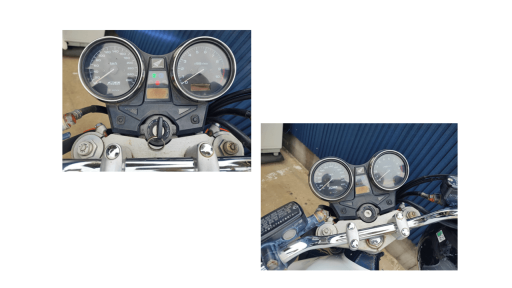 バイクの情報が記載されている液晶が日焼けしてしまうと、車検が通らなくなってしまうだけでなく、自分が今何キロで走っているのかすらわからなくなってしまいます。