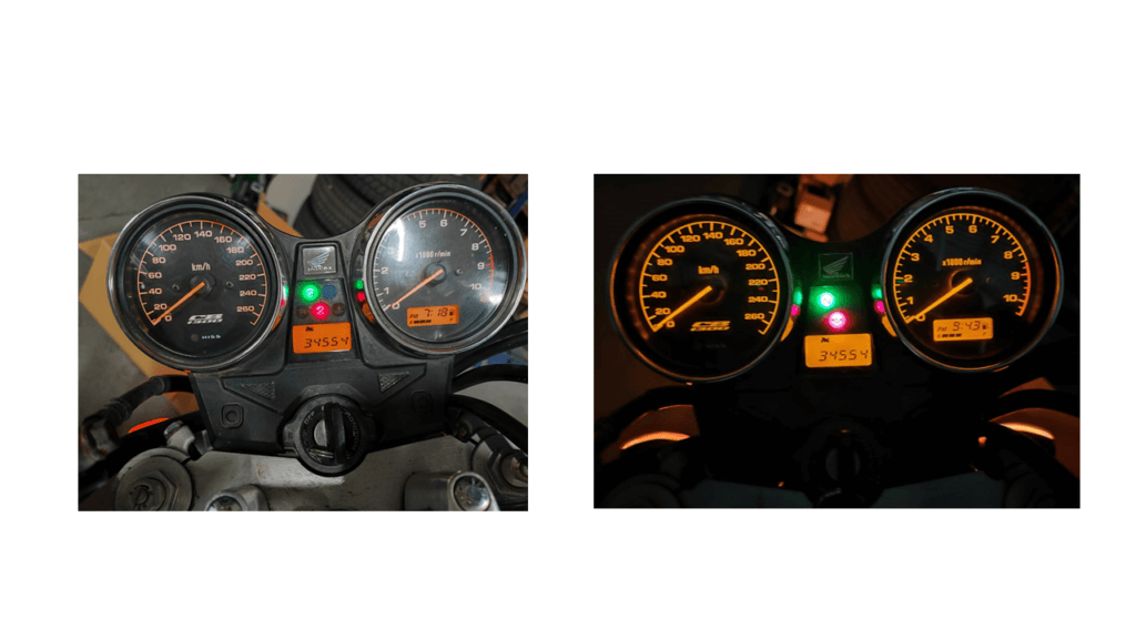 今回修理させていただいたバイクの速度と回転数はアナログ式でしたが、最近ではすべての情報をデジタルで表示していることもかなり多くあります。
