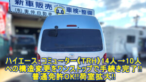【構造変更】トヨタ ハイエース・コミューター GL《GDH/TRH/KDH》乗車定員の変更で荷室拡大!| 14人乗りを10人乗りへ!2ナンバーを3ナンバーへ!|減員登録|大阪 門真 整備