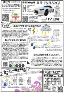 - 目次 - ●今月の中古車 日産 FAIRLADY Z バージョンSTツートンカラー 車両情報 車両装備・仕様 ●トーシンの豆知識 雷のジグザグには意味がある 雷はジグザグに落ちる 空気は電気を通さないはず… ●ト […]