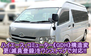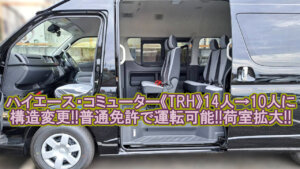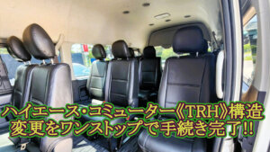 今回、お客様から構造変更のご依頼を頂戴し、トヨタのハイエース・コミューター《TRH》をお預かり致しました。弊社にご依頼を頂戴する構造変更で最も多い車種がハイエースになります。今回の様に座席を減らす減員登録もあれば、8ナ […]