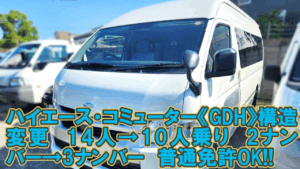 【構造変更】トヨタ ハイエース・コミューター GL《GDH/TRH/KDH》14人乗りから10人乗りに 2ナンバーから3ナンバーへ構造変更 普通免許で運転OK!!大阪門真市の整備士がワンストップで対応!!