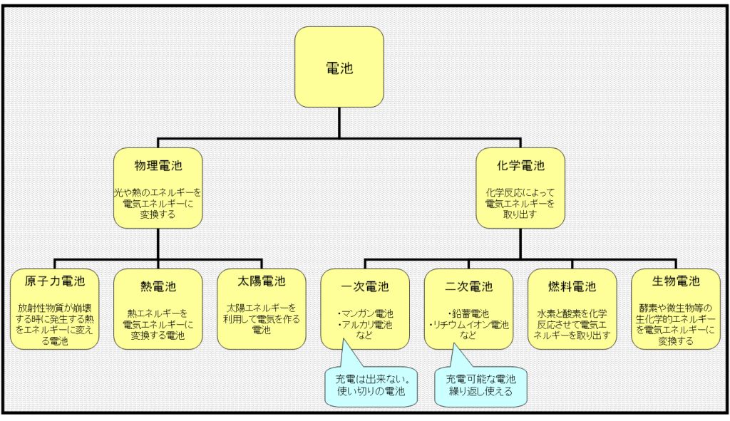 大きな違いは、一次電池は充電出来ませんが、二次電池は充電する事が出来ます。繰り返し使用する事が可能です。