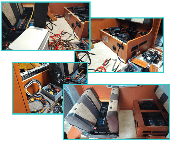 リン酸鉄リチウムイオンバッテリーをはじめ、走行充電器(ソーラー充電MPPTチャージコントローラー内臓)、インバーターetcそしてお客様のご要望も一緒に搭載していきます。