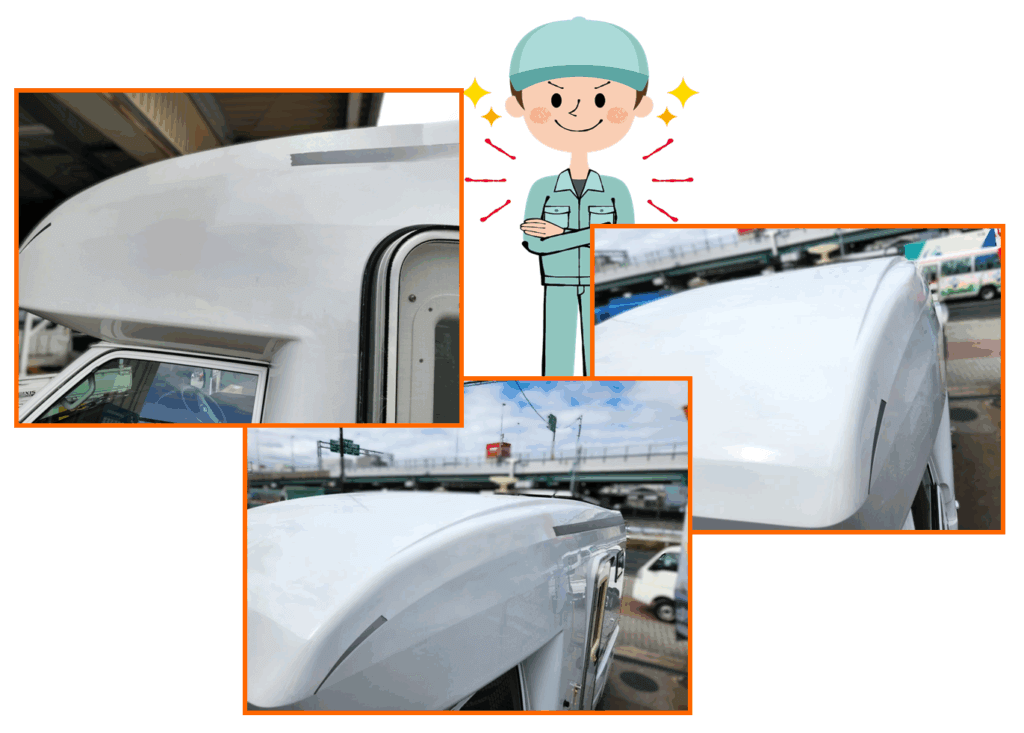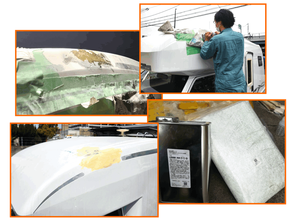 キャンピングカー《MAMBOWマンボウ》SKP2L 割れたルーフの修理に門真の整備士が奮闘!FRPボディの破損は修復可能?FRPボディシェルの補修修理