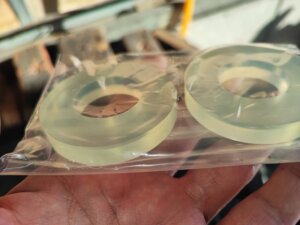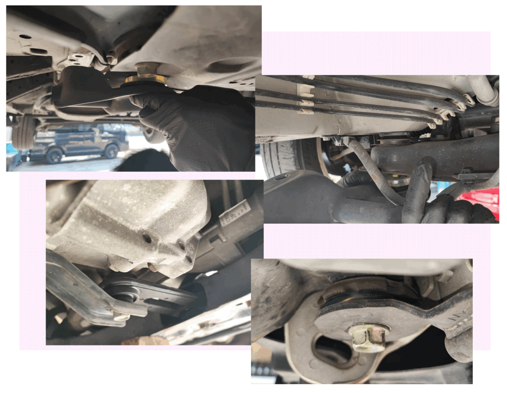 サスペンションクロスメンバーのブッシュが破損している事で発生していた異音をカバーする為(補修)にウレタンワッシャー(ウレタンブッシュ)を挟み込んでいきます。