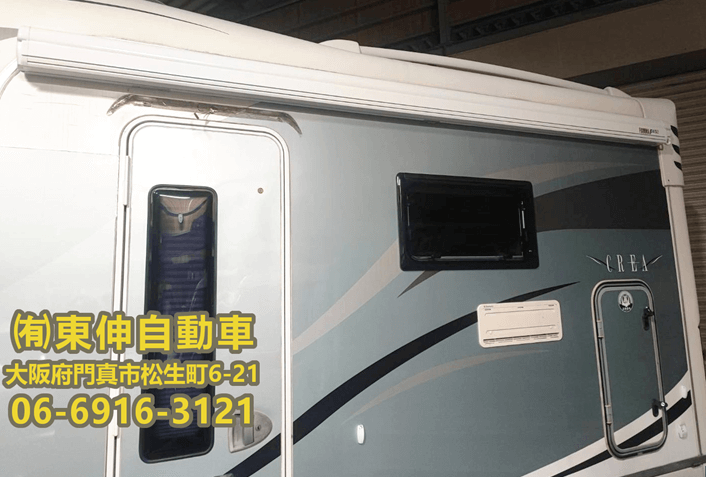 クレアの内装は無駄が無く、機能的で且つ落ち着きのあるデザイン性が人気です。まるで「楽しい旅をお約束しますよ。」と車が言ってくれているかのようです。理想のキャンピングカーとして多くのユーザーに愛されているモデルですが、今回は「サイドオーニング」を取り付けたいとのご依頼が門真の整備士のところにやって参りました。