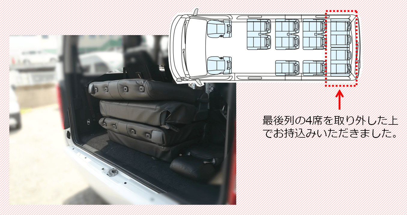 ご依頼主様の方で座席を取り外してお持込み頂いておりますので、書類作成が主になります。