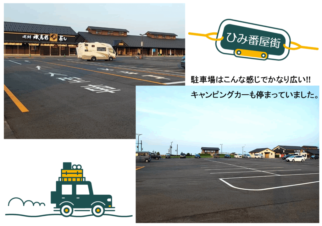 そしてキャンパーが真っ先に気になるのが何と言っても駐車場!トイレや食事などと併せてキャンパー目線でお届けしたいと思います。