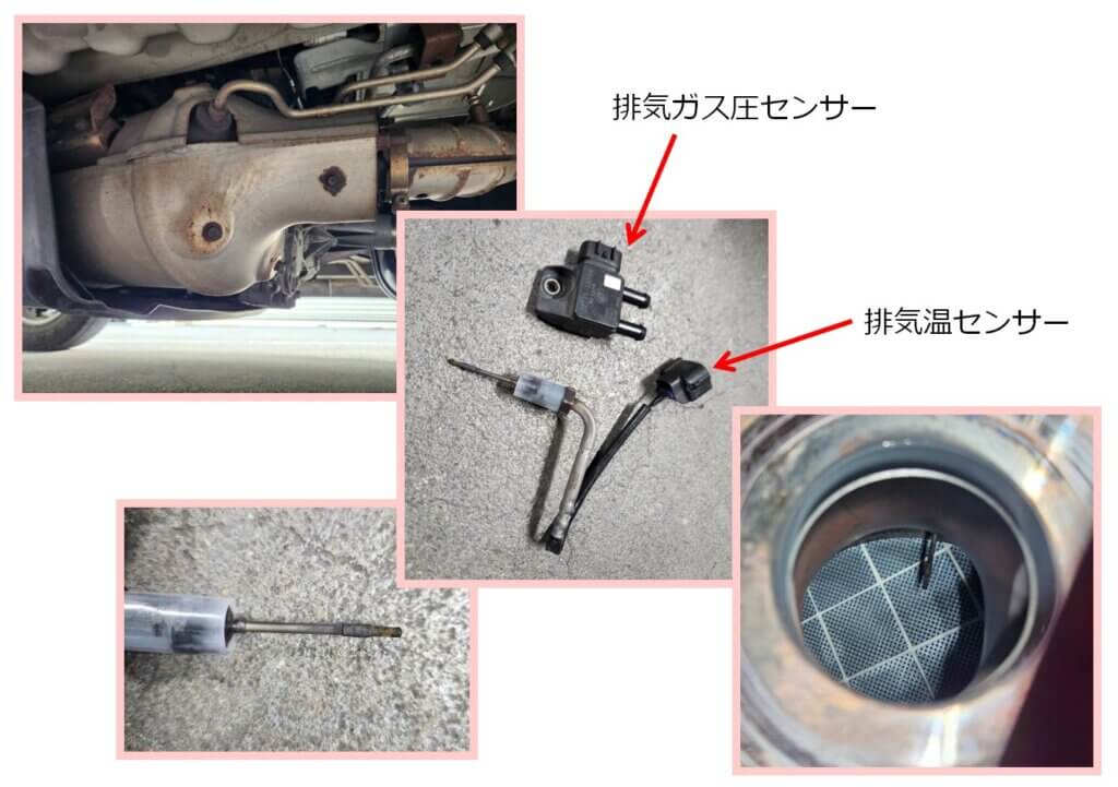 今回、排気ガス圧センサーに故障(不具合)が生じた事で、状況をモニター出来なくなり結果DPFに異常が生じたと思われます。