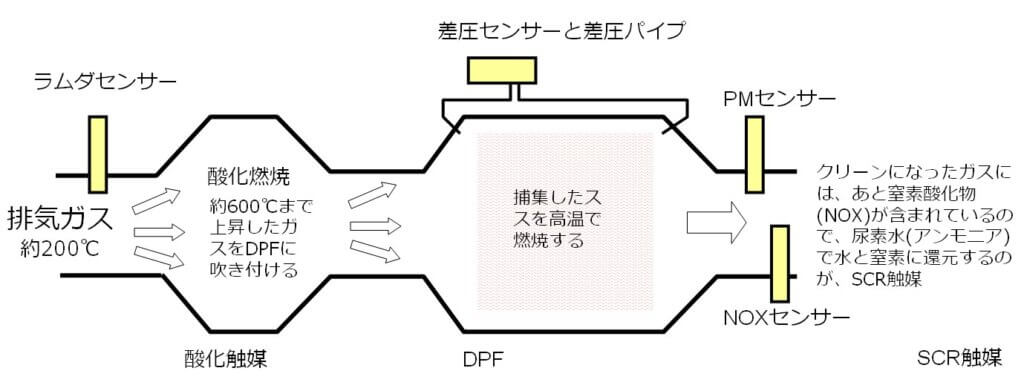 DPF内部のPMを焼き切る事で、目詰まりを解消する