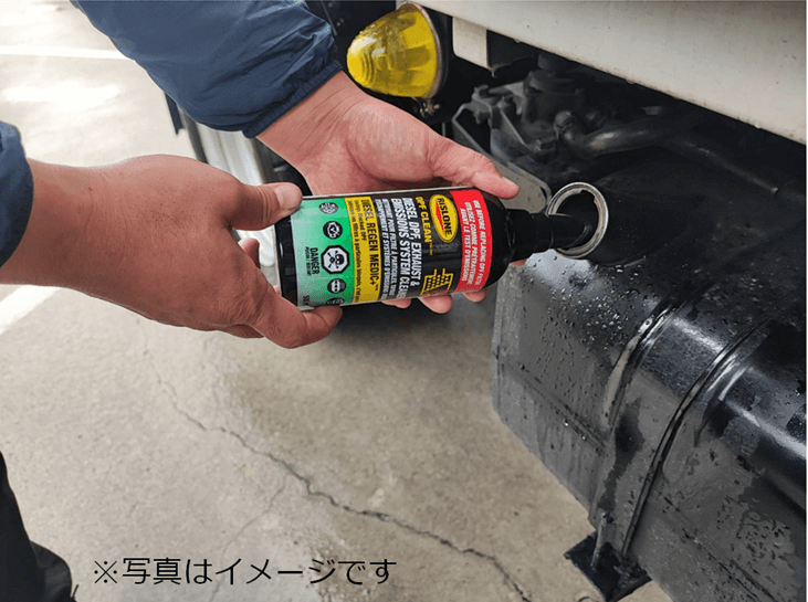 インジェクター交換後、DPF再生を行ったところ温度がしっかり上がっているのが確認出来ました。通常は約20分程度でDPF再生が終了します。その後、燃料系添加物(DPFクリーナー)を注入します。