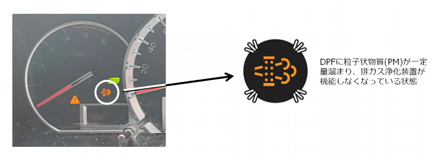 DPFの警告灯が点灯。