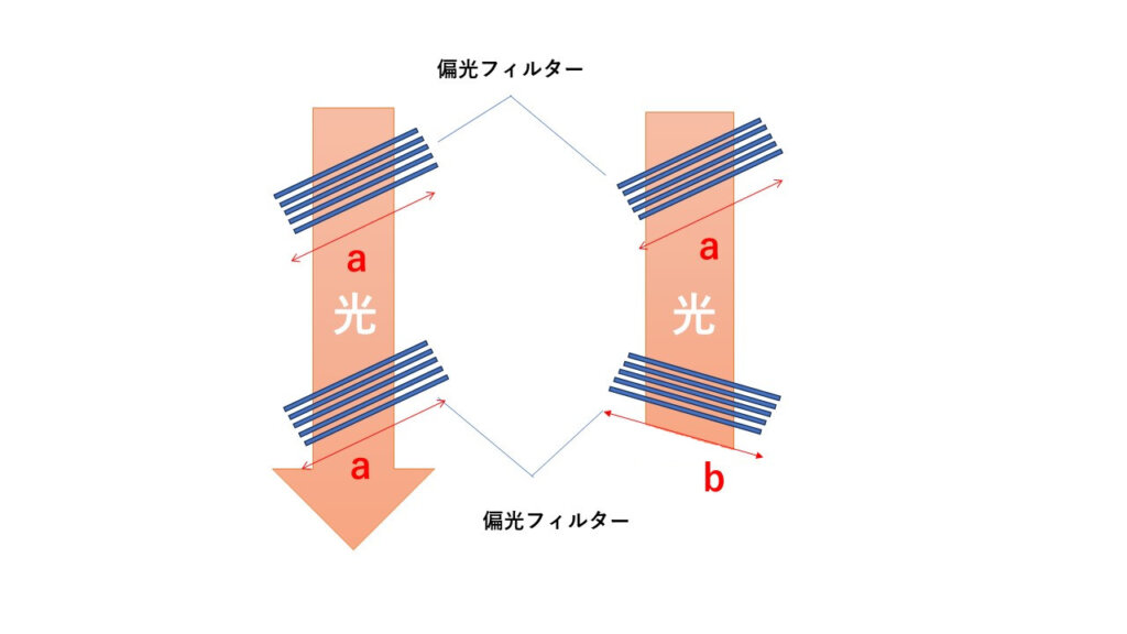 2枚の偏光フィルターを使用して、光を通してくれています。