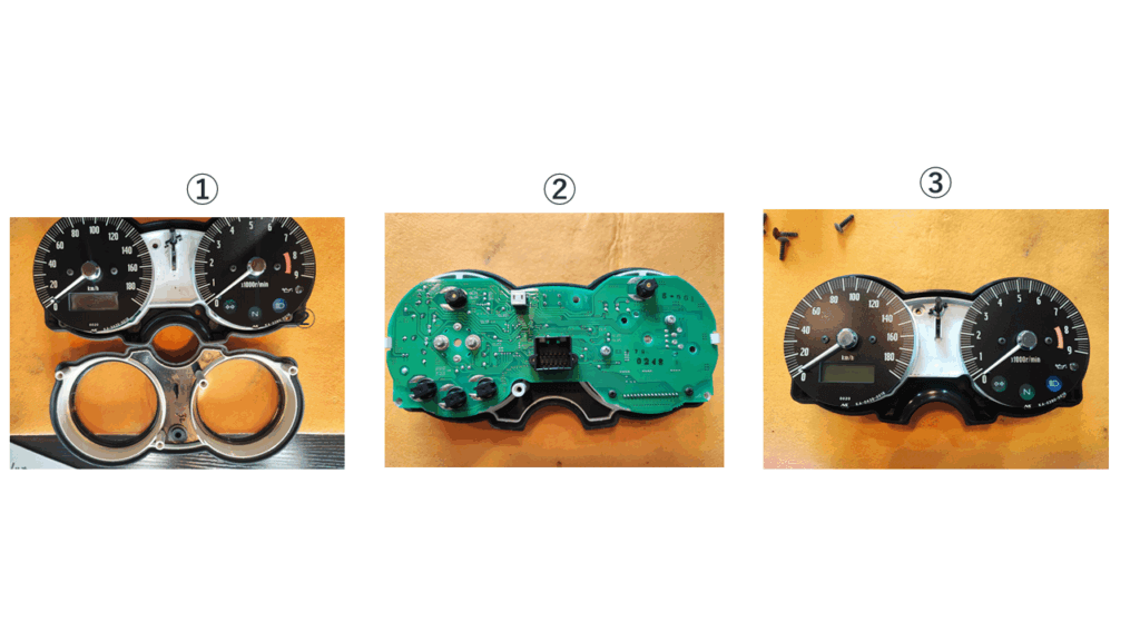 - メーターを分解する際にケースや針、基板等が破損する場合が御座いますが、その際の責任は負いかねますのであらかじめご了承下さい。