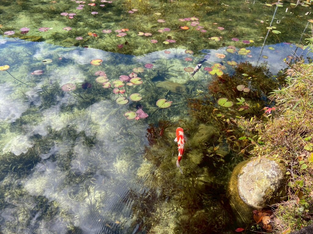 | モネの池 | 岐阜県関市板取(せきし いたどり)にある通称「モネの池」 正式名称は名もなき池ですが、その透明度と睡蓮、色鮮やかな鯉が織りなす風景が、印象派画家クロード・モネの《睡蓮》を思わせることから、こう呼ばれるようになりました。 |