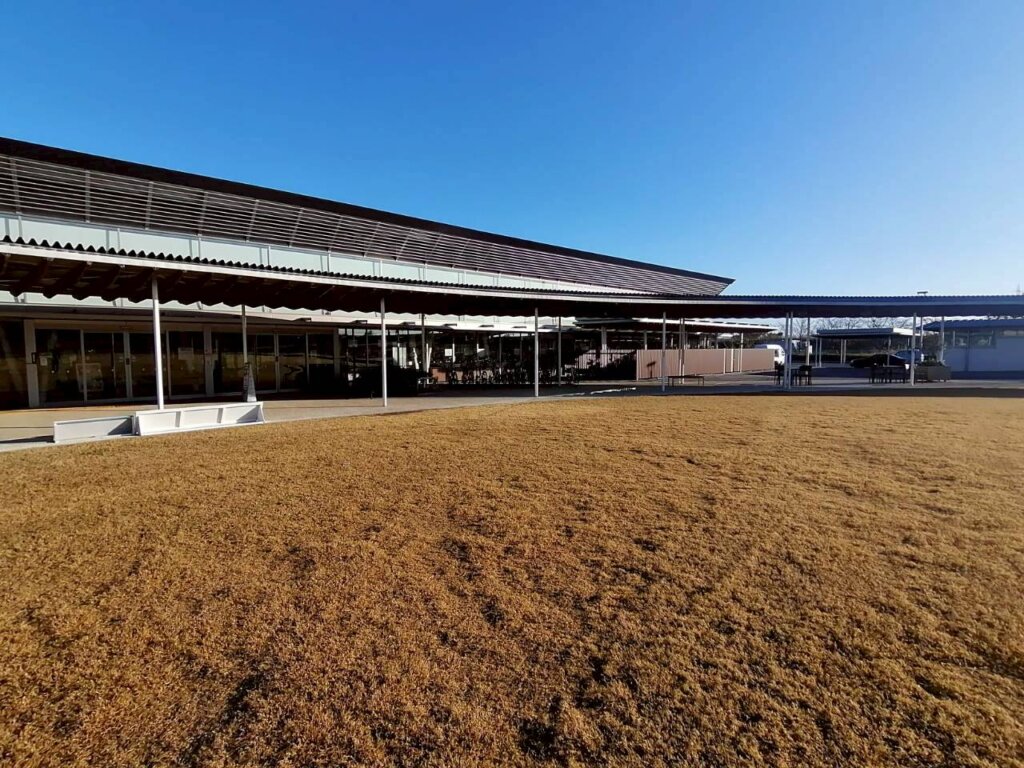 建物はガラス張りを多用した近代的なデザインで、自然光がたっぷり差し込む明るい空間になっています。屋根付きの回廊が敷地を囲むように設計されており、雨天時でも移動がしやすい構造です。