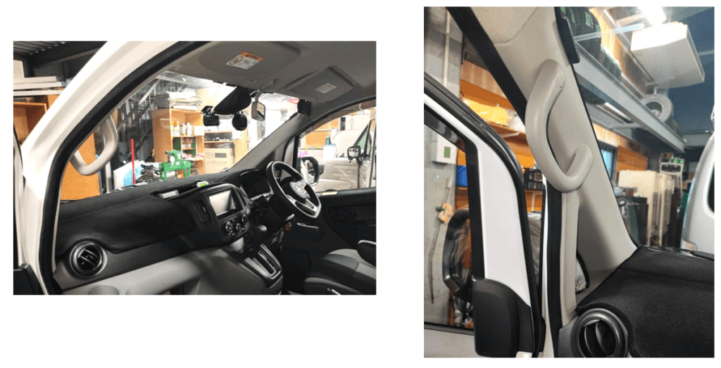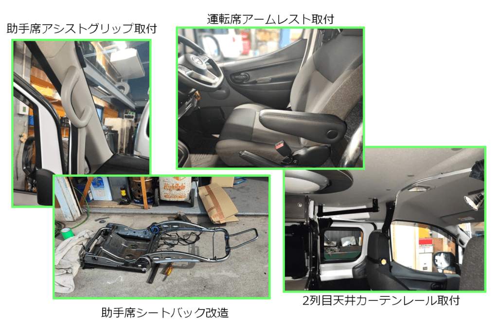 【改造 】《日産 NV200バネット VX 5BF》NV200(キャンピングカー仕様)を改造!助手席アシストグリップ取付・運転席アームレストの取付・助手席シートバックのカスタム・カーテンレール取付|大阪 門真 整備 修理