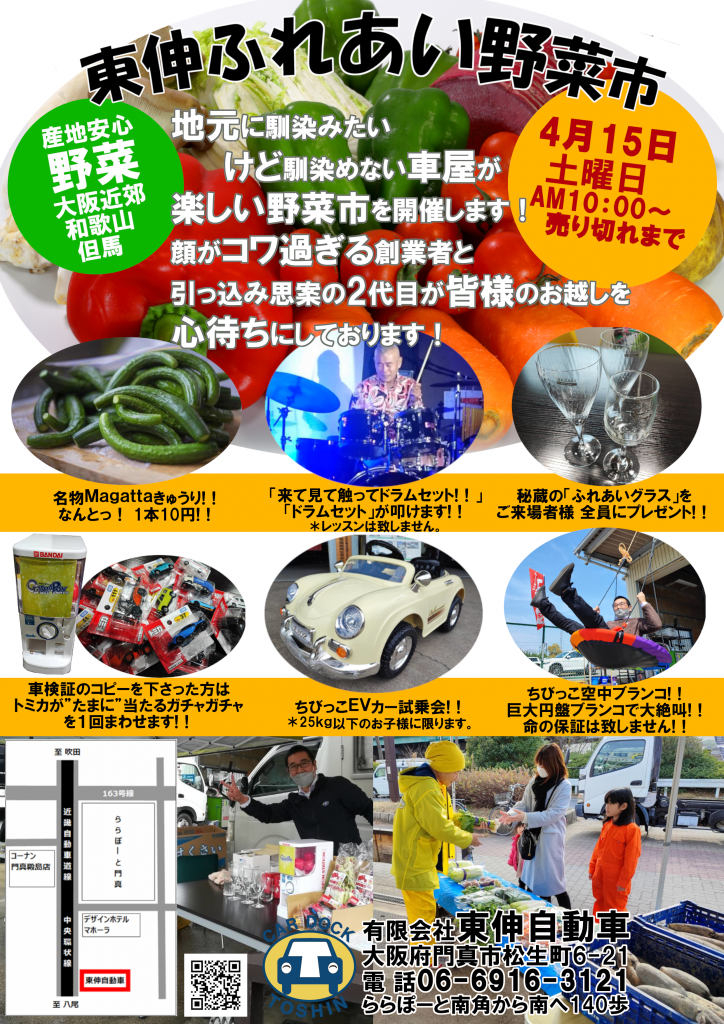 門真市松生町にある東伸自動車にて『東伸ふれあい野菜市』開催します!!