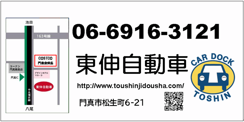 | 〒571-0044 大阪府門真市松生町6-21 有限会社東伸自動車 (担当:熊野・吉村まで) 📞06-6916-3121 |