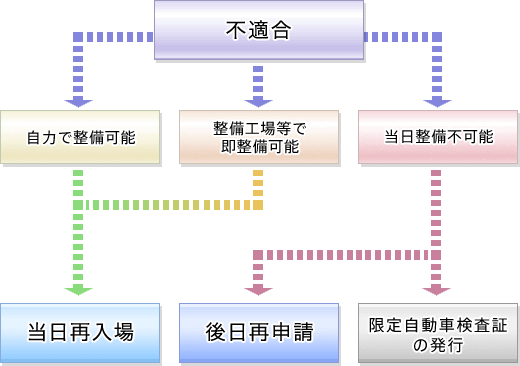 ※ 車検で不適合の項目があったとしても、次の「④ 構造等変更検査」を受検することは可能です。