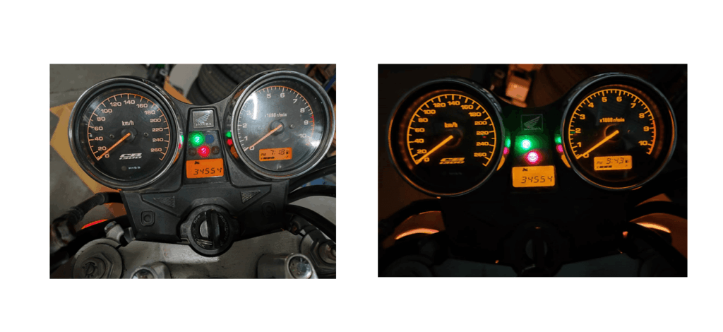 今回修理させていただいたバイクの速度と回転数はアナログ式でしたが、最近ではすべての情報をデジタルで表示していることもかなり多くあります。