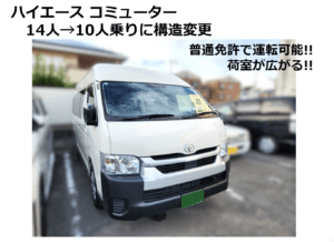 【構造変更】トヨタ ハイエース・コミューター GL《TRH/GDH/KDH》14人乗りを10人乗りへ!乗車定員の変更!(減員登録)2ナンバーを3ナンバーへ!荷室が広い!普通免許で運転可!|大阪 門真 整備